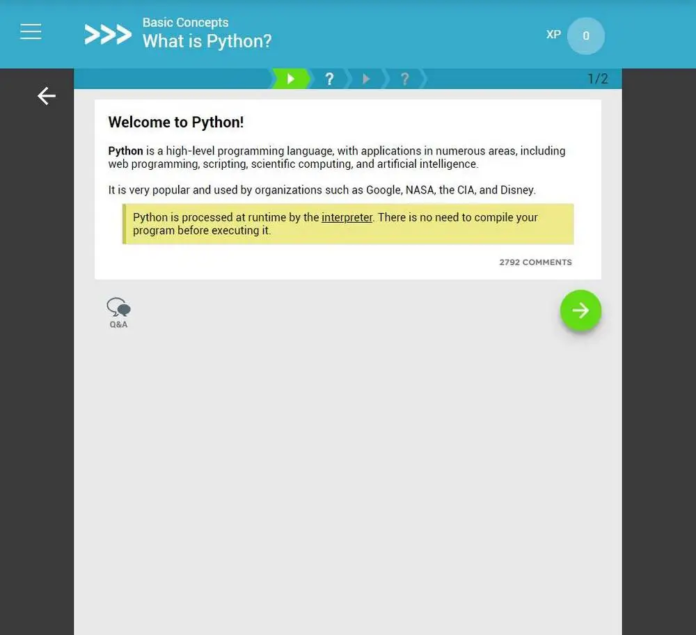 Au fur et à mesure que nous apprendrons, nous gagnerons en expérience et nous débloquerons des réalisations. Et toutes ces informations, ainsi que nos progrès, peuvent être consultées via notre profil. Les parties des cours terminés apparaîtront en vert, tandis que les parties que nous n’avons pas encore terminées apparaîtront en bleu.