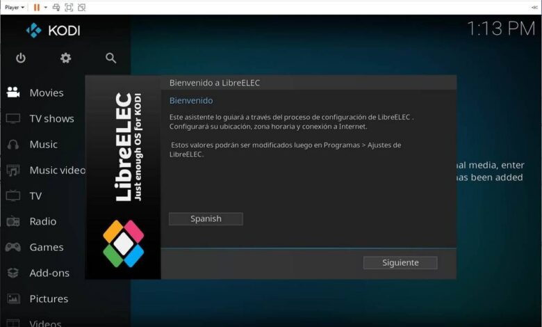 L’installation de cette distribution est très simple, bien qu’elle se fasse en mode texte. Et lorsque l’installation est terminée, nous l’avons prêt à l’emploi. Lorsque nous l’allumons, nous verrons directement l’interface principale de Kodi, et à partir de là, le reste dépend de nous.