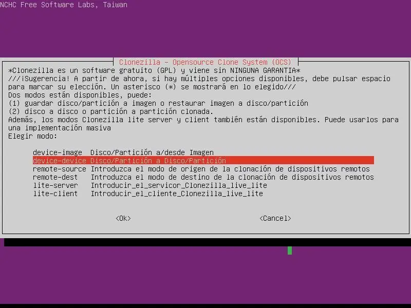 Clonezilla n’est pas un programme en tant que tel, mais est conçu pour fonctionner comme un système d’exploitation Live . Par conséquent, une fois téléchargé, nous devrons le graver sur une clé USB ou un CD et démarrer le PC avec afin de commencer à utiliser ce logiciel. Lorsque nous démarrons le PC avec ce programme, aucune modification n’est apportée aux disques durs, tout est chargé dans la RAM. Par conséquent, nous n’aurons pas à nous inquiéter.