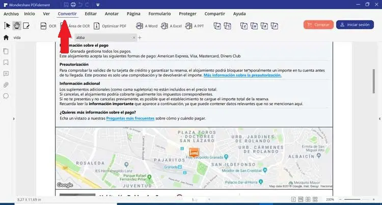 Le menu Convertir est l’un des plus importants que l’on trouve dans l’application. À partir de là, nous pouvons trouver des fonctions telles que l’ OCR , optimiser un PDF, effectuer des conversions à la fois vers Word, Excel ou PowerPoint, ainsi que faire des conversions sous forme d’image ou de texte brut.