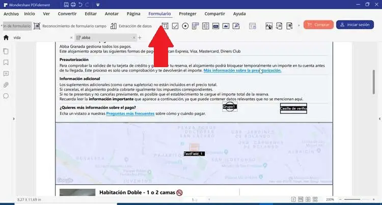 À partir de l’onglet Formulaire, nous pouvons créer toutes sortes de documents dynamiques que nous pouvons utiliser plus tard pour être remplis. De cette façon, nous pouvons intégrer un bouton poussoir, une combo, une liste, une image, un champ de signature, une case à cocher, entre autres.