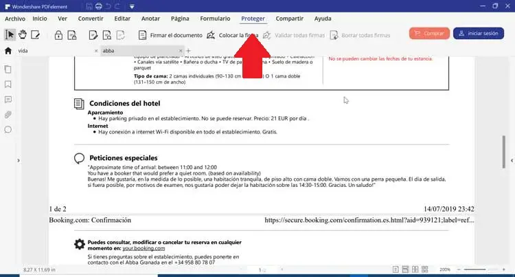 D’autre part, l’onglet Protéger nous permettra d’ajouter une signature au document avec des certificats numériques. Ici, nous trouverons les fonctions de Signer le document et Placer la signature, que nous enregistrerons une fois inséré.
