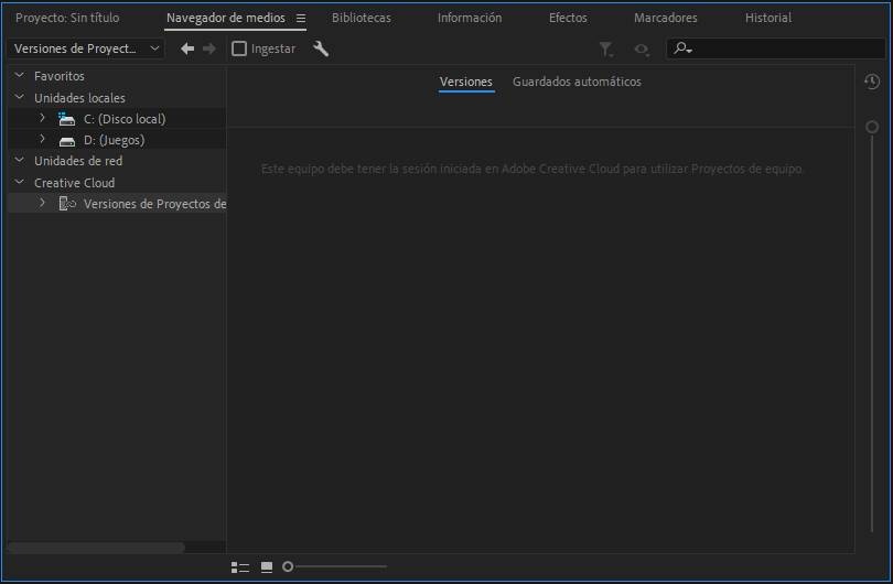 Pour importer du contenu dans notre projet, nous pouvons le faire, soit avec le raccourci clavier Ctrl + I , soit simplement en faisant glisser le contenu de notre ordinateur vers la fenêtre principale d’Adobe Premiere.