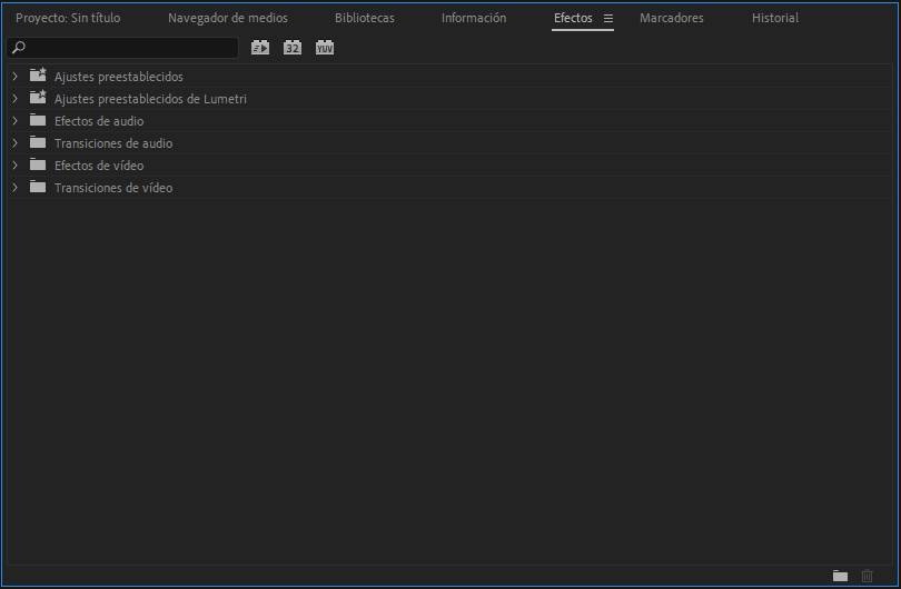 Cette section média comporte plusieurs éléments qui nous permettent de gérer toutes les vidéos et objets que nous importons. Par exemple, nous pouvons accéder à un navigateur multimédia pour rechercher des fichiers sur notre ordinateur à partir du programme lui-même, accéder aux médiathèques, à une section d’informations, aux effets que nous avons créés, aux signets des éléments les plus utilisés et à un historique avec tout ce qui a été terminé.
