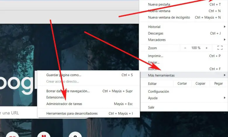 Pour commencer avec tout cela, en principe nous vous dirons que nous pouvons accéder à cette fonctionnalité dont nous parlons à partir du menu Chrome . En particulier, nous y parviendrons à partir de «Plus d’outils / gestionnaire de tâches». Ce sera alors lorsque la fenêtre de la fonction dont nous parlons apparaîtra à l’écran. Dans un premier temps, comme nous l’avons dit, les informations présentées ici se limitent à quelques champs. Ceux-ci, par exemple, nous aideront à connaître la consommation de RAM ou de CPU de chacun des composants en cours d’exécution du navigateur.