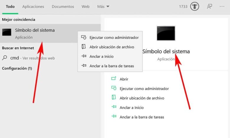 Par conséquent, pour accéder à cette ligne de commande, nous tapons cela, CMD , dans la zone de recherche du menu Démarrer. De plus, pour réaliser ce qui nous intéresse ici, il est recommandé de le faire avec des autorisations d’administrateur.