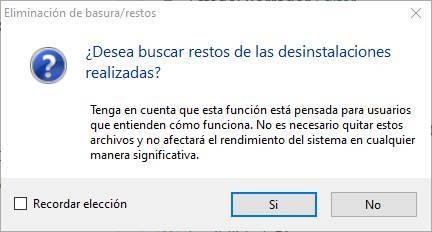 Une fois terminé, une nouvelle fenêtre nous permettra de rechercher les restes du logiciel que nous venons de supprimer.