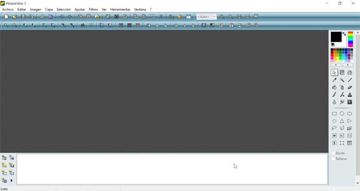 Une fois que nous exécutons PhotoFiltre, le menu principal apparaît avec une interface qui peut nous être assez familière car il a un design similaire à d’autres outils similaires. Bien qu’il soit à l’origine en anglais, il est possible de changer sa langue en espagnol en le téléchargeant depuis son site Web.