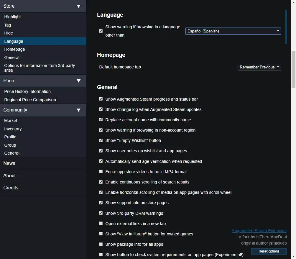 Une fois l’extension installée, elle commencera à fonctionner. Dès que nous entrons dans Steam, nous pouvons commencer à voir ses fonctions dans le magasin.