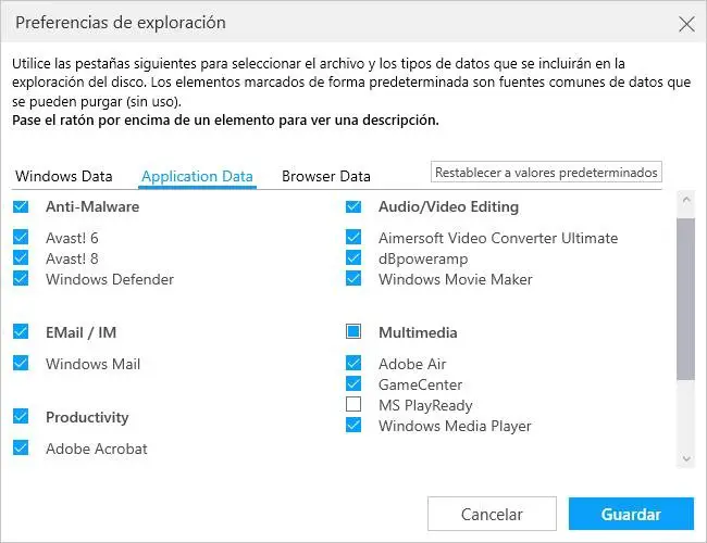 Ce programme est dédié à l’élimination massive de tous les fichiers inutiles où qu’ils soient. Pour ce faire, il est programmé pour rechercher ces types de fichiers dans plus de trente programmes informatiques.