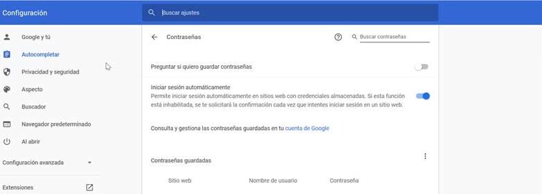Le gestionnaire de mots de passe Google Chrome est un outil utile avec lequel nous pouvons stocker en toute sécurité les différentes clés et mots de passe que nous utilisons sur Internet pour accéder à certains services. De cette façon, chaque fois que nous entrons sur un site Web et que nous entrons notre nom d’utilisateur et notre mot de passe pour la première fois, Google Chrome nous demandera si nous voulons qu’il l’enregistre. Si nous disons oui, chaque fois que nous accédons à cette page à nouveau, nous n’aurons qu’à remplir automatiquement les champs de nom d’utilisateur et de mot de passe enregistrés dans le navigateur.