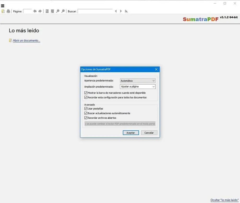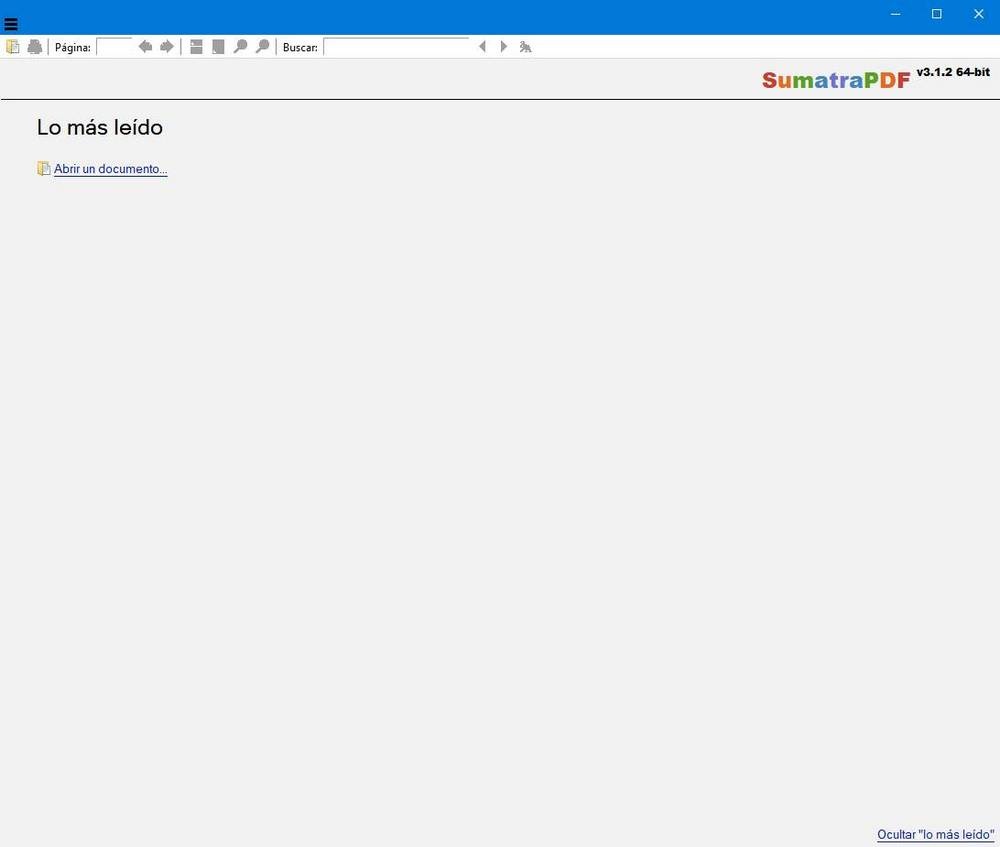 La vérité est que si les programmes deviennent de plus en plus lourds, Sumatra PDF a réussi à rester très léger, rapide et, surtout, fonctionnel. Lorsque nous ouvrons le programme, la première chose que nous trouverons est une fenêtre avec les documents les plus récents ou les plus lus (que nous pouvons facilement cacher) afin que, si nous voulons ouvrir un document récemment, nous puissions le faire.