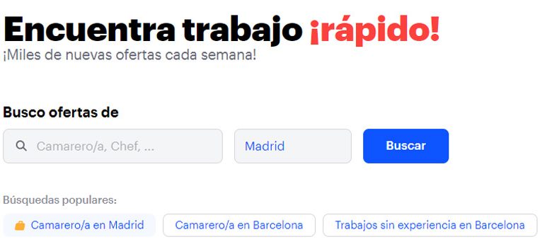 Désormais, il n’est plus nécessaire d’aller business par business CV en main, il existe des plateformes qui s’assurent que les entreprises déposent leurs offres d’emploi afin que les personnes intéressées puissent proposer leur candidature. Job Today est l’un des plus importants aujourd’hui, tout comme le célèbre InfoJob .L’entreprise du même nom a lancé cette plateforme en 2015 afin de faciliter la recherche d’emploi et, depuis, elle n’a fait que grandir, au point d’atteindre quatre millions d’utilisateurs enregistrés.