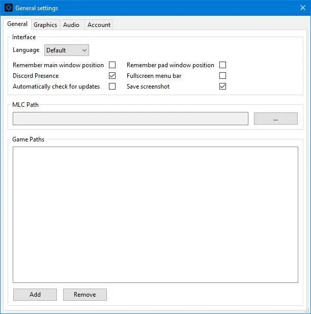 - Général: nous permet d’ajuster l’interface du programme. On peut choisir la langue, la recherche de mises à jour, la possibilité de se souvenir de la position de la fenêtre, etc. Nous pouvons également configurer les répertoires de jeux ici.