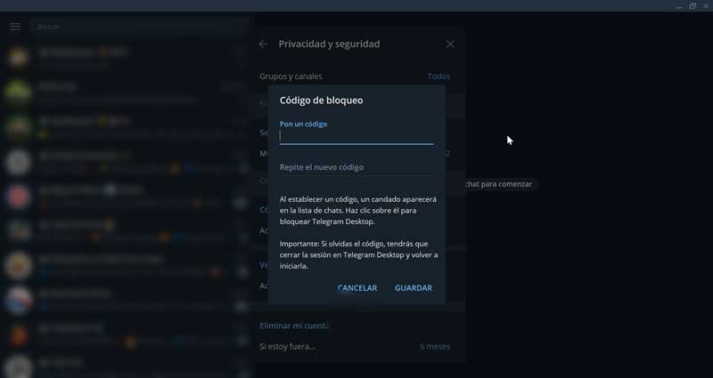 Telegram est une application très focalisée sur la sécurité et la confidentialité de ses utilisateurs afin que nous ayons la possibilité de nous protéger des regards indiscrets en utilisant un mot de passe . C’est quelque chose de vraiment utile si nous partageons l’ordinateur avec plus de personnes ou vivons avec plus de gens et que nous voulons éviter d’être bavardés par nos conversations.