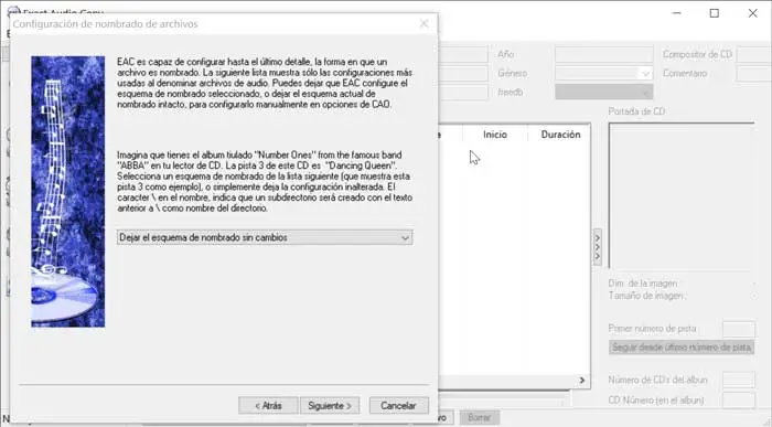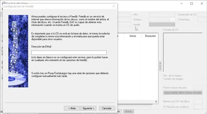 Nous pouvons également utiliser notre e-mail pour nous inscrire dans la base de données de chansons Freedb avec laquelle nous pouvons automatiquement joindre les métadonnées des fichiers gratuitement. Enfin, nous pouvons choisir dans quel format nous voulons que les fichiers soient classés, en ayant de nombreuses combinaisons possibles. Enfin, nous choisissons «Nous sommes un utilisateur expert et je veux pouvoir utiliser tout le potentiel de l’EAC».