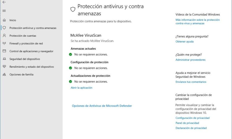 Si nuestro portátil tiene Windows 10, el mejor antivirus que podemos instalar, sin lugar a duda, es Windows Defender. El antivirus de Microsoft es totalmente gratuito y a día de hoy es de los que mayor nota consiguen en los tests de seguridad. Sin embargo, mientras McAfee esté instalado en el ordenador, no vamos a poder instalar habilitar este otro antivirus. Aunque esté caducado y desactivado.