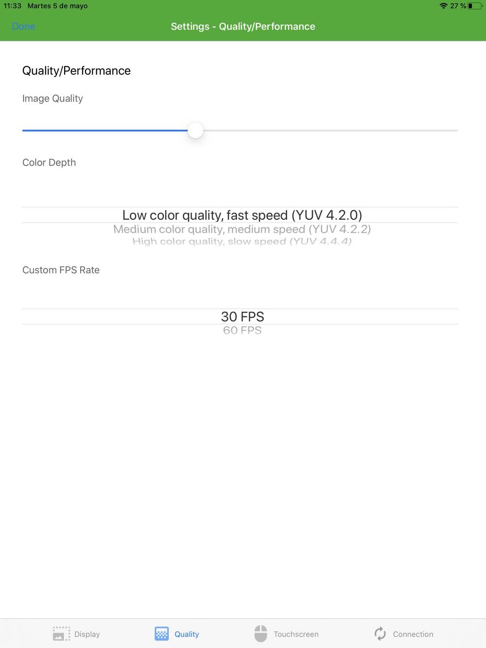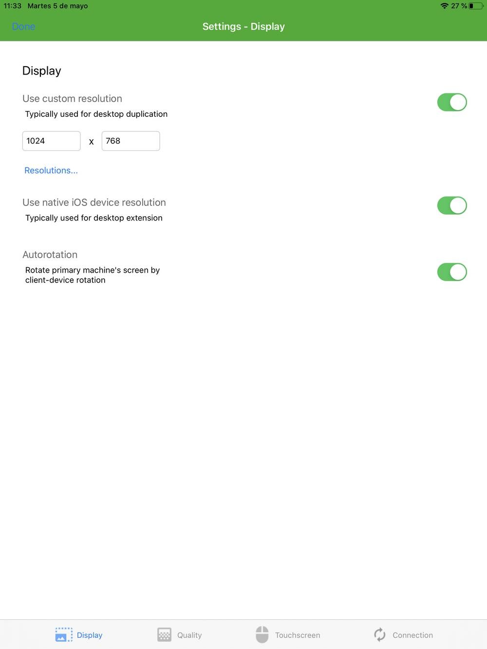 Los clientes que podemos instalar en Windows, Android o iOS tienen algunas configuraciones más. Por ejemplo, nos permiten configurar la calidad de la emisión, la resolución que queremos que tenga nuestra segunda pantalla y el funcionamiento de los periféricos.