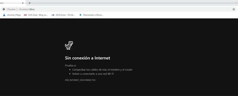 Beaucoup le connaissent comme le jeu t rex de Google. Et nous pouvons également y accéder en tapant la commande chrome: // dino dans la barre d’adresse du programme. C’est la même chose qui apparaît lorsque l’ on passe hors ligne , on se réfère à l’écran qui indique l’erreur de connexion.
