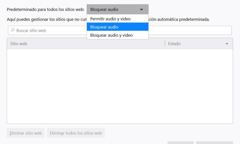 Il est évident que cela ne résout que partiellement le problème, surtout si l’on prend en compte les possibles plantages ou plantages commentés de Firefox. Par conséquent, et grâce aux améliorations de la nouvelle version, à partir de Firefox 69, le navigateur inclut des contrôles dédiés au blocage à la fois audio et vidéo. Dans le même temps, des options supplémentaires ont été intégrées qui nous permettent d’établir certaines règles pour chaque site Web.
