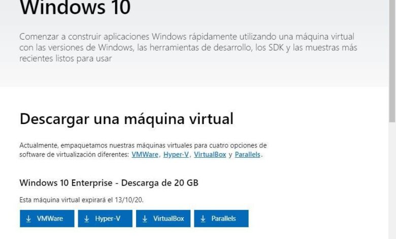 Et si nous voulons quelque chose de plus simple et plus léger, nous pouvons nous tourner vers des machines avec Edge. Ceux-ci, que nous pouvons trouver sur ce lien , sont valables pendant 90 jours mais, au lieu d’apporter autant de programmes, ils sont beaucoup plus simples et n’apportent que le système d’exploitation et les navigateurs Microsoft. Au lieu de 20 Go, ils n’occupent que 6 Go.