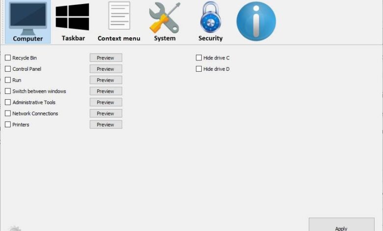 C’est probablement la section la plus intéressante que ce programme nous offre. De là, nous pourrons configurer de nombreuses fonctionnalités directement liées à notre Windows. Entre autres, les plus intéressants que l’on puisse trouver ici sont: