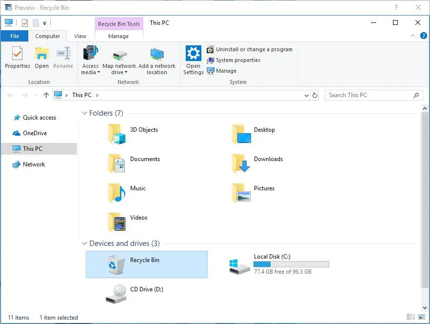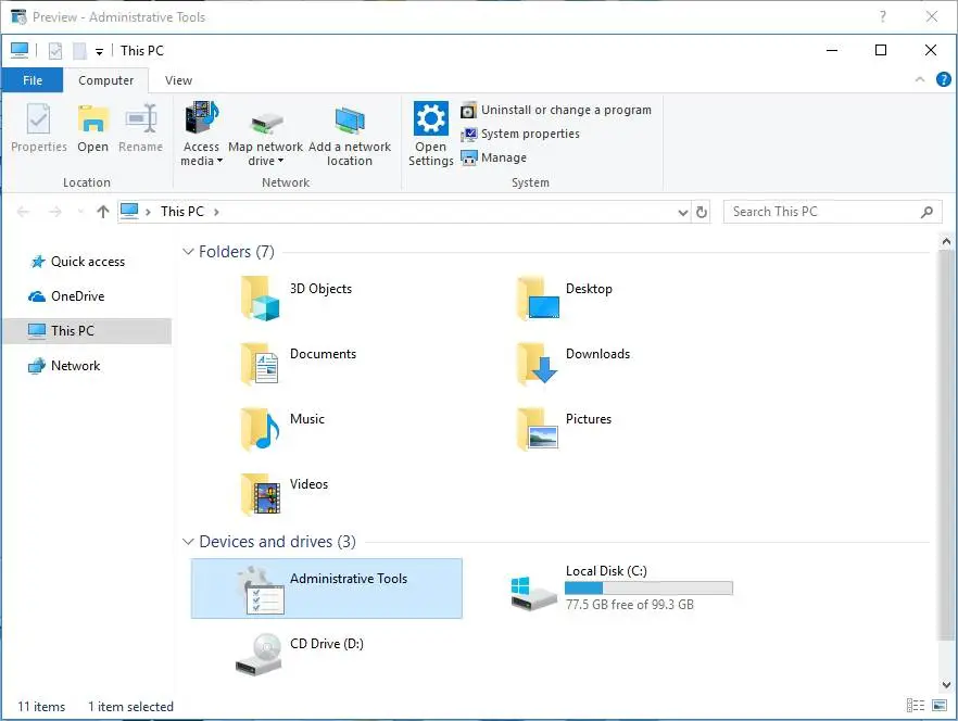 Dans cette catégorie nous pourrons personnaliser les éléments qui apparaissent, ou non, dans la fenêtre « Cet ordinateur » de notre Windows 10. Nous pouvons ajouter des raccourcis pour afficher la corbeille, le panneau de configuration, un accès rapide à «Exécuter», changer entre fenêtres, outils administratifs, connexions réseau et imprimantes.