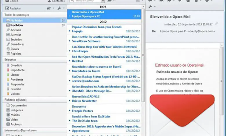 Comme son nom l’indique, il s’agit d’un client de messagerie conçu par le navigateur Web Opera . Ainsi, il s’agit d’ un outil open source totalement personnalisable et très léger, qui présente une compatibilité avec Windows. Ajouté à cela, il est considéré comme une excellente alternative car il s’agit d’un logiciel entièrement gérable pour lire facilement les e-mails que vous recevez.