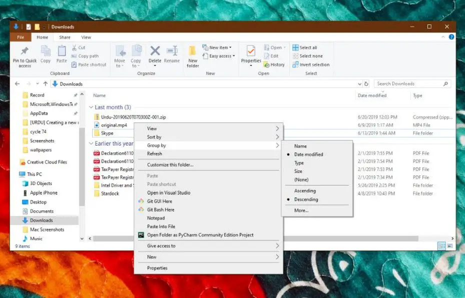 Certes, les utilisateurs de Windows 10 qui ont mis à jour vers la version 1903 ont un problème étrange: c’est que le dossier des téléchargements a un aspect différent. Les fichiers sont maintenant regroupés par heure relative; par exemple, les fichiers téléchargés il y a une semaine, il y a un mois ou au début de l’année.