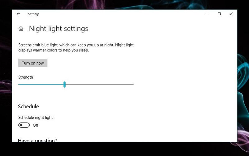 Tout d’abord, Night Light est une fonctionnalité de Windows 10 qui ajoute une teinte orange à l’écran. Vérifiez donc si vous l’avez activé. Si vous préférez utiliser F.lux plutôt que la fonction native, vérifiez ses paramètres. Cela fait plus que teinter l’écran en orange. Désactivez-le et voyez si cela résout le problème.