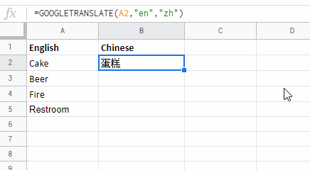 Vous pouvez répéter la commande autant de fois que vous le souhaitez, et même l’utiliser pour traduire des colonnes entières sans avoir à les placer dans le traducteur. Cliquez dans la cellule où la formule est exécutée et faites glisser le curseur vers les cellules ci-dessous.
