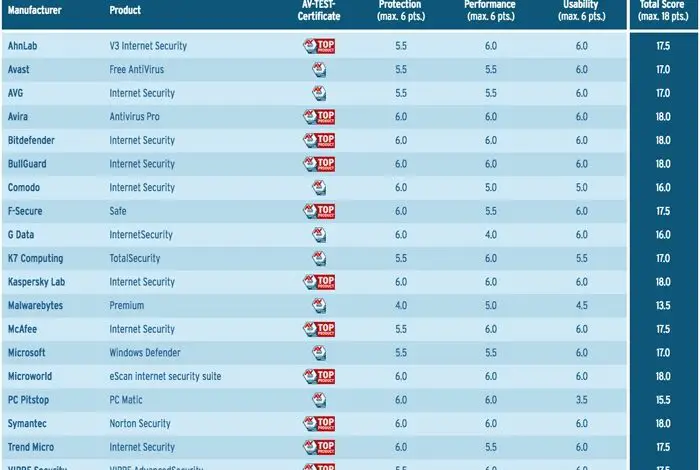 Ainsi, les solutions de sécurité qui cette fois ont atteint un total de 18 points d’évaluation et sont donc les meilleurs arrêts dans les tests effectués, ont été Avira Antivirus Pro , Kaspersky Internet Security , BullGuard Internet Security , Microworld eScan Internet Security Suite , Bitdefender Internet Sécurité , et enfin Symantec Norton Security .