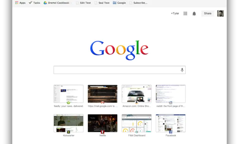 La nouvelle barre de recherche Google serait positionnée, comme vous pouvez le voir sur l’image, dans la partie centrale de la page, juste au-dessus des fenêtres des sites les plus visités par l’utilisateur.