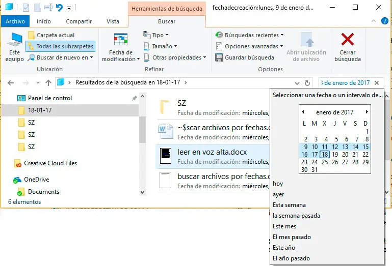 Cependant, l’Explorateur Windows lui-même propose un outil pour pouvoir rechercher des fichiers qui ont été créés ou modifiés un certain jour ou dans une plage de dates spécifique d’ une manière simple afin que si nous ne nous souvenons pas du nom, du chemin ou du type de fichier c’était, nous pouvons filtrer par ces champs.