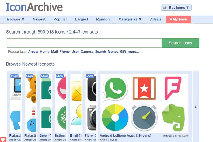 Cette plate-forme dispose d’un grand nombre d’ icônes pour Windows , près de 600 000, toutes cataloguées et avec un puissant moteur de recherche par mot-clé pour localiser ces éléments . Nous les retrouverons dans les formats les plus courants tels que ICO ou PNG.