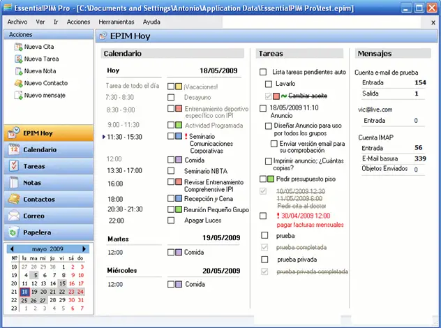 EssentialPIM est disponible en espagnol , il est compatible avec Windows 7 et sa dernière version EssentialPIM 3.21 Free peut être téléchargée à partir des liens suivants: