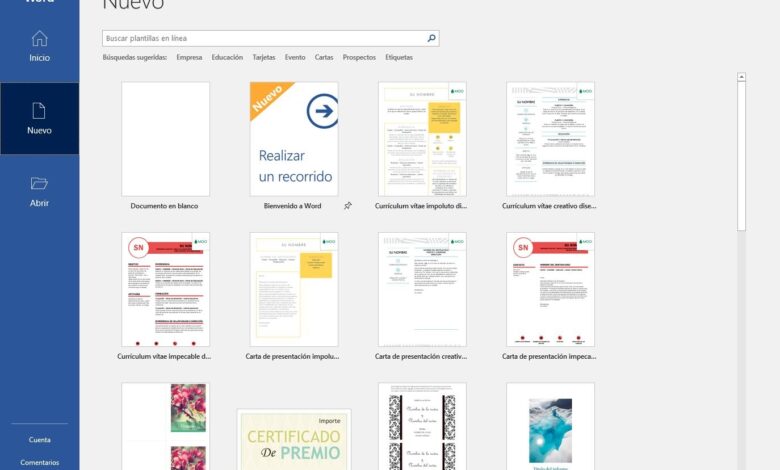 Comme nous pouvons le voir, la première option qui apparaît est un document vierge et, plus tard, tous les autres modèles inclus dans cet outil bureautique. Double-cliquez simplement sur « Document vierge » pour accéder à la création d’un nouveau document Word.