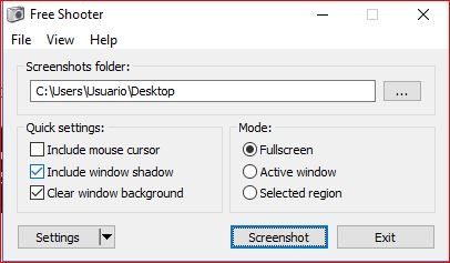 Entre el resto de opciones y funciones de Free Shooter cabe destacar que permite indicar si queremos o no incluir el cursor del ratón en las capturas de pantalla, si queremos activar el modo pantalla completa, ventanas activas o seleccionar una zona de la pantalla para nuestras capturas, el directorio donde queremos que se guarden las capturas realizadas, las teclas rápidas o de acceso rápido para cada uno de los modos de capturas o si queremos que se elimine el fondo de las capturas, entre otras.