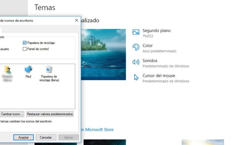 Il peut y avoir plusieurs causes ou raisons pour lesquelles le bac de recyclage peut disparaître . L’un d’eux est que nous l’avons involontairement désactivé , nous devons donc le vérifier à partir de la configuration de Windows 10. Pour ce faire, nous ouvrons la page de configuration du système et à partir de l’option Personnalisation , nous entrons dans les thèmes . Une fois là-bas, nous cliquons sur l’option Configuration de l’icône du bureau , qui ouvrira une nouvelle fenêtre où nous devons vérifier que la case Corbeille est cochée . Sinon, nous devons le marquer et accepter pour enregistrer les modifications.