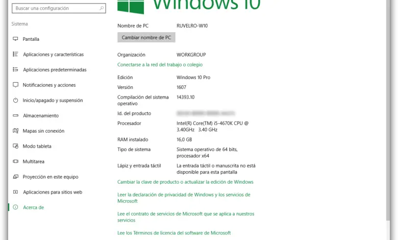 Pour savoir quelle version de Windows nous avons installée, il suffit de rechercher dans Cortana « À propos de votre PC » et, dans la fenêtre qui s’ouvre, nous pourrons voir l’édition, la version et la compilation sur lesquelles nous avons installé le système.