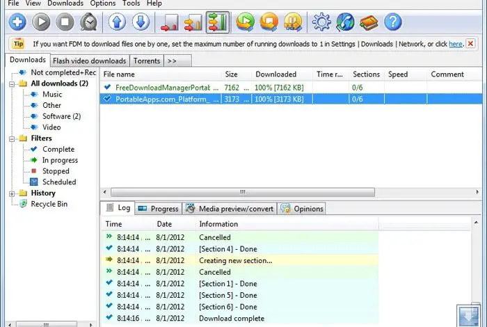 C’est l’un des gestionnaires de téléchargement les plus populaires, car il remplit à la fois des fonctions d’administration et d’optimisation. En plus de pouvoir télécharger des fichiers en utilisant le protocole HTTP , il prend en charge le travail avec des fichiers torrent ou des vidéos flash , entre autres. Il s’intègre parfaitement à notre navigateur préféré, bien que ce soit quelque chose que nous devrons activer manuellement dans cette version portable.