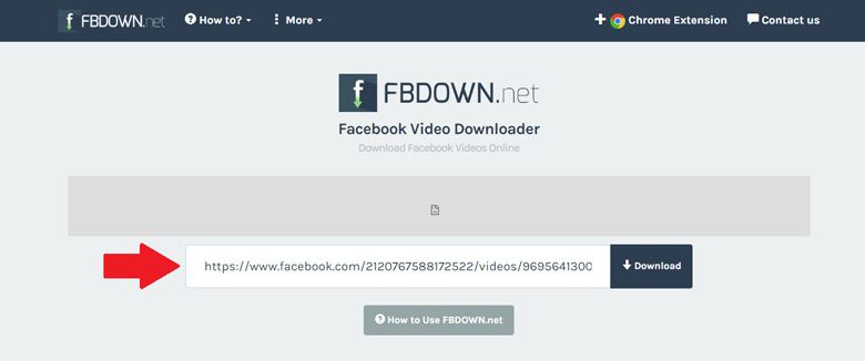 FBdown.netqui est considéré comme l’une des pages les plus utilisées pour télécharger des clips à partir de la plate-forme sociale. - Après être entré dans l’outil en ligne, vous verrez une boîte blanche qui dit » Entrez le lien vidéo Facebook … » et là, vous devez coller l’URL que vous avez déjà copiée. Pour l’instant, cliquez sur le bouton » Télécharger «.
