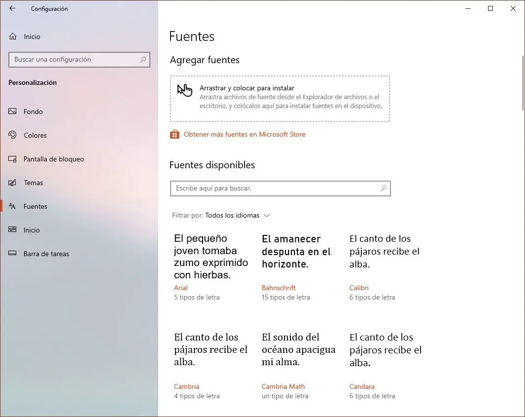 Enfin, la mise à jour Windows 10 mai 2019 nous permettra d’ installer de nouvelles polices dans le système d’exploitation en les faisant simplement glisser vers la fenêtre de configuration. Cela permet également de voir facilement tous les détails et de désinstaller ces polices de Windows.