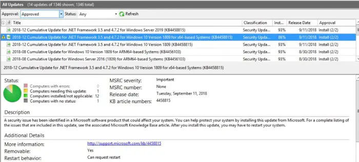 Par conséquent, les utilisateurs qui utilisent Windows Update pour installer des mises à jour remarqueront déjà qu’une nouvelle mise à jour cumulative pour .NET Framework sera proposée parallèlement aux mises à jour cumulatives du système d’exploitation, qui sont installées en arrière-plan ou à la demande de l’utilisateur. En parallèle, les administrateurs système utilisant des plates-formes de déploiement verront ces nouveaux cumulatifs lors de la recherche des nouvelles versions pour Windows 10 version 1809 ou Windows Server 2019 .