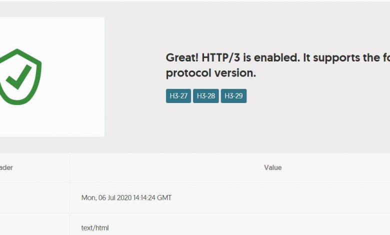 D’un autre côté, si ce site Web utilise le protocole HTTP / 3, il nous montrera une image comme nous le voyons ci-dessous. Il nous donnera également des informations plus détaillées à ce sujet.