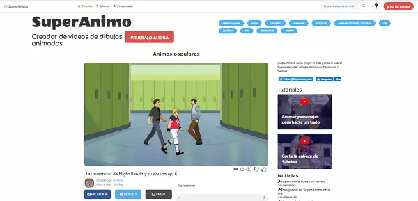 SuperAnimo est un site Web où vous pouvez concevoir des vidéos de style bande dessinée pour raconter vos histoires. Ceci, grâce à l’utilisation d’outils qui créent un effet cartoon et permettent d’ajouter des nuages de pensées, des textes marquants, des autocollants et toutes sortes de personnages. De la même manière, vous pouvez ajouter des sons, des vidéos et des images aux formats PNG, GIF et JPG .