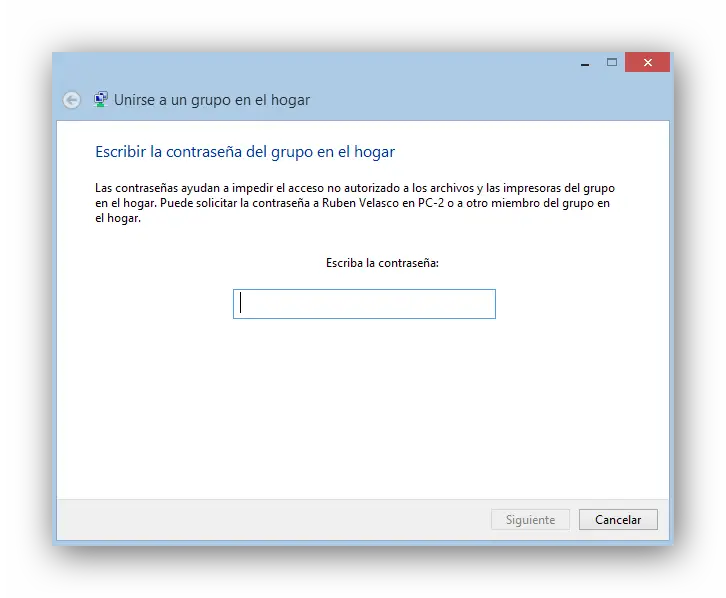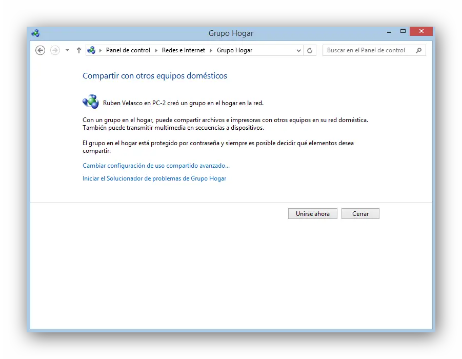 Le groupe résidentiel est prêt. Dans le deuxième ordinateur et dans tous les ordinateurs supplémentaires, nous devons accéder à la section du groupe résidentiel et nous pouvons voir comment l’un des ordinateurs du réseau l’a déjà créé et nous donne la possibilité de le rejoindre.