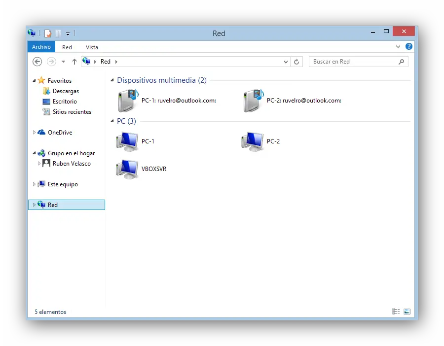 De même, si nous accédons à la section «Groupe résidentiel», nous verrons tout le contenu organisé en dossiers et par ordinateurs.