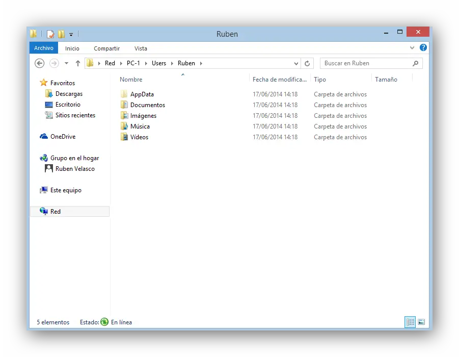 Ici, nous pouvons voir tous les contenus partagés des ordinateurs classés par équipement. En double-cliquant sur l’un d’eux, nous ouvrirons les dossiers de cet ordinateur pour nous déplacer librement sur son disque dur, en accédant uniquement aux fichiers que nous avons autorisés à partager.