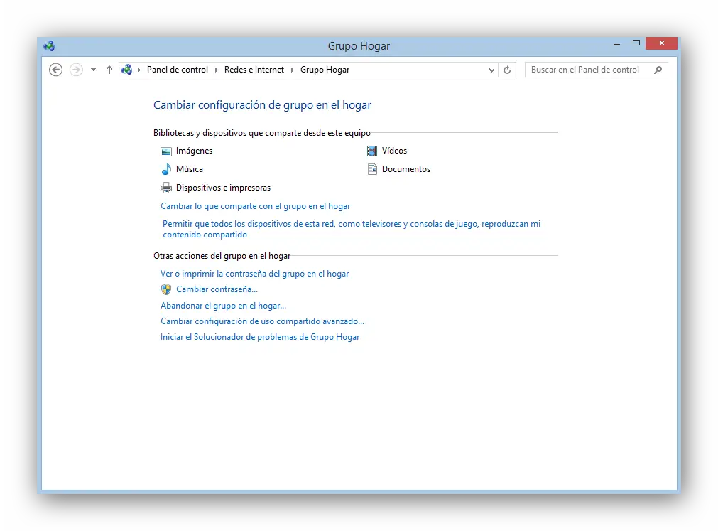 - Panneau de configuration> Réseau et Internet> Groupe résidentiel